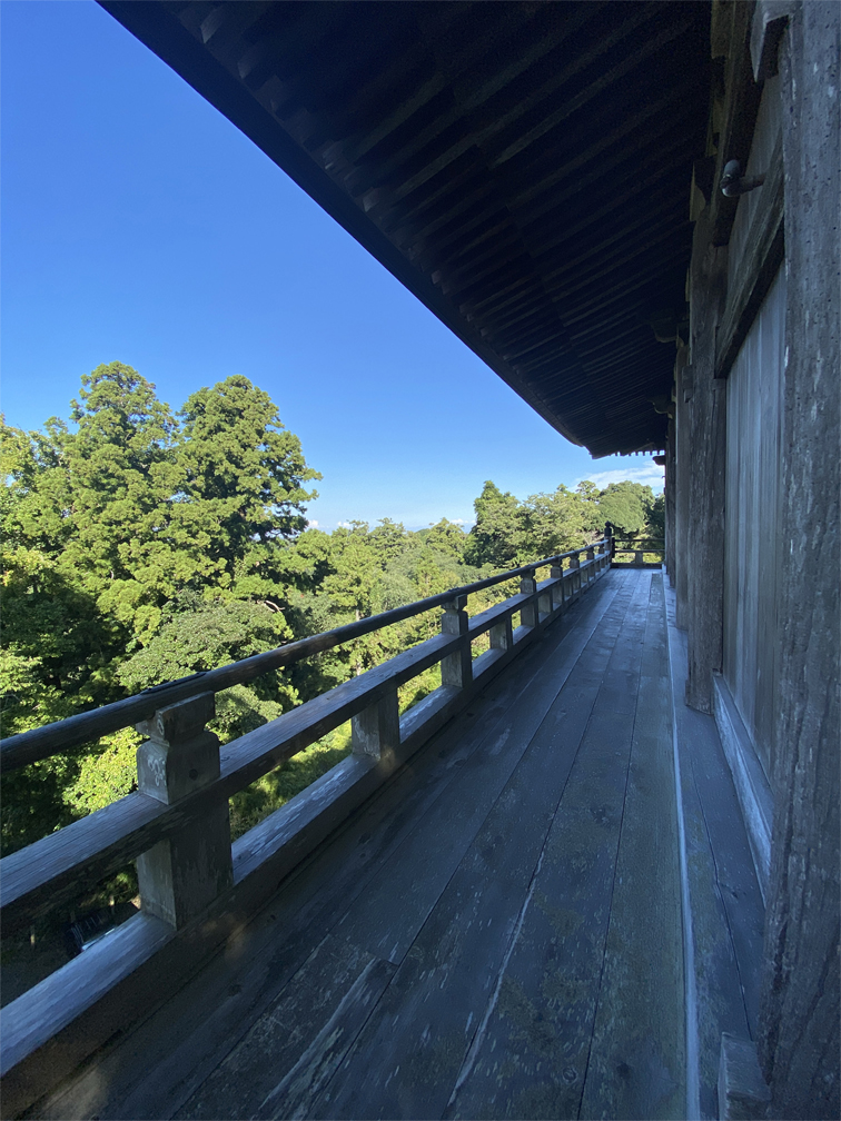 休憩を兼ねて。なんて思っていたけれど、200段以上の階段とながーーーーーい上り坂でクタクタ。でも、本堂の上は真っ青な空と綺麗な緑と心地よい風で気持ちがよかったです。