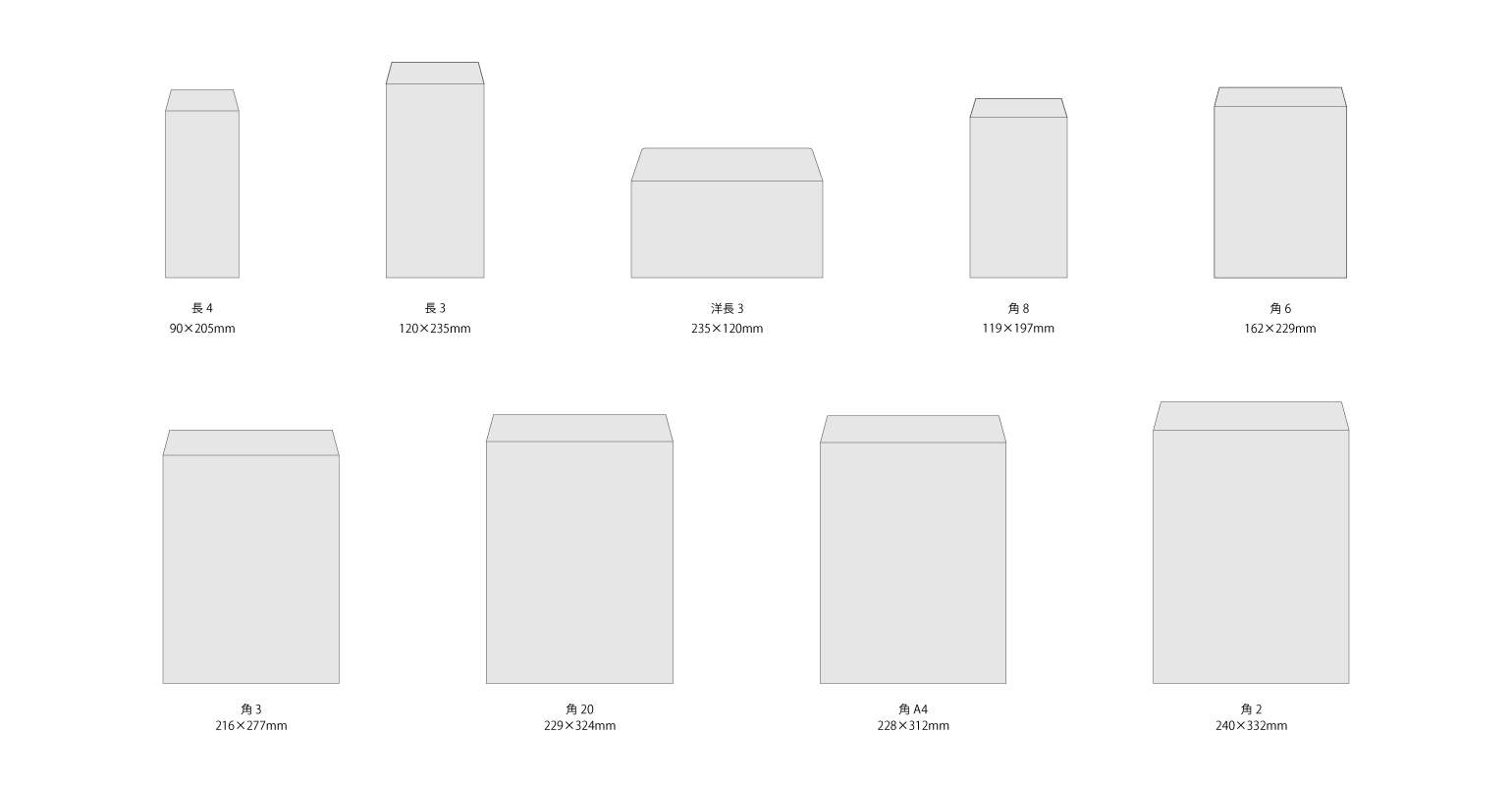 | 長3 | 120×235mm | A4三つ折りが縦向きに入る大きさ |